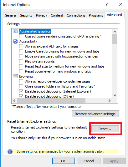 As a last resort, I reset the Internet Explorer 11