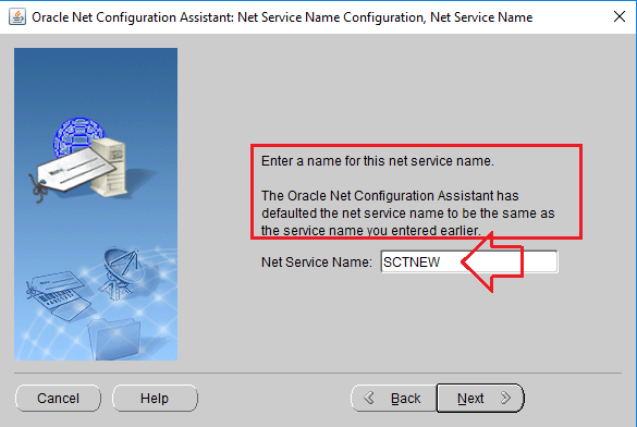 By default the configuration tool would suggest you the Oracle service name as new net service name, which you can change to any name. Just make sure that you will remember it.