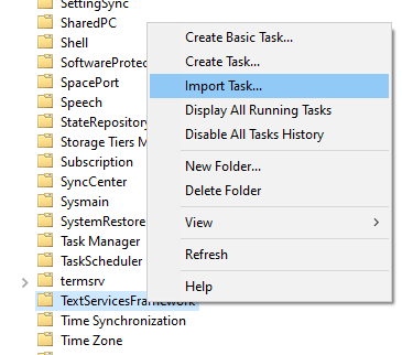 Go back to Task Scheduler and right click on “TextServiceFramework” and select “Import Task”