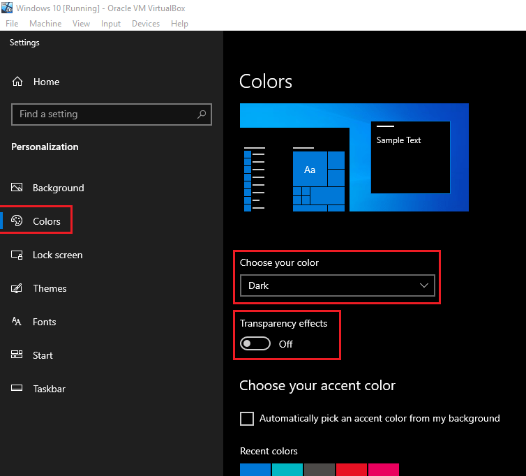 Disable Transparency. This makes your Windows 10 VM respond much faster (not just “seems faster®” ;) )