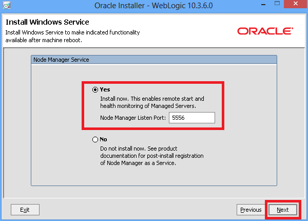 Select Yes for “Node Manager Service”, it will make few things simpler at later stages, especially while you are using Admin Server for managing both forms and reports servers.