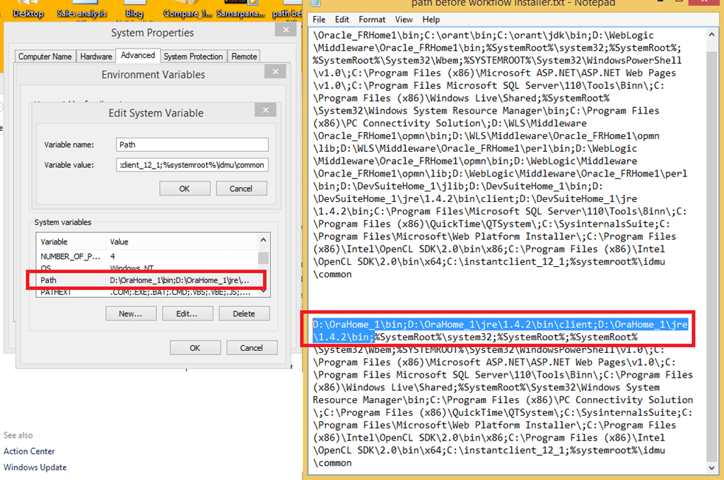 Observe the additional entries added with the PATH environment string.