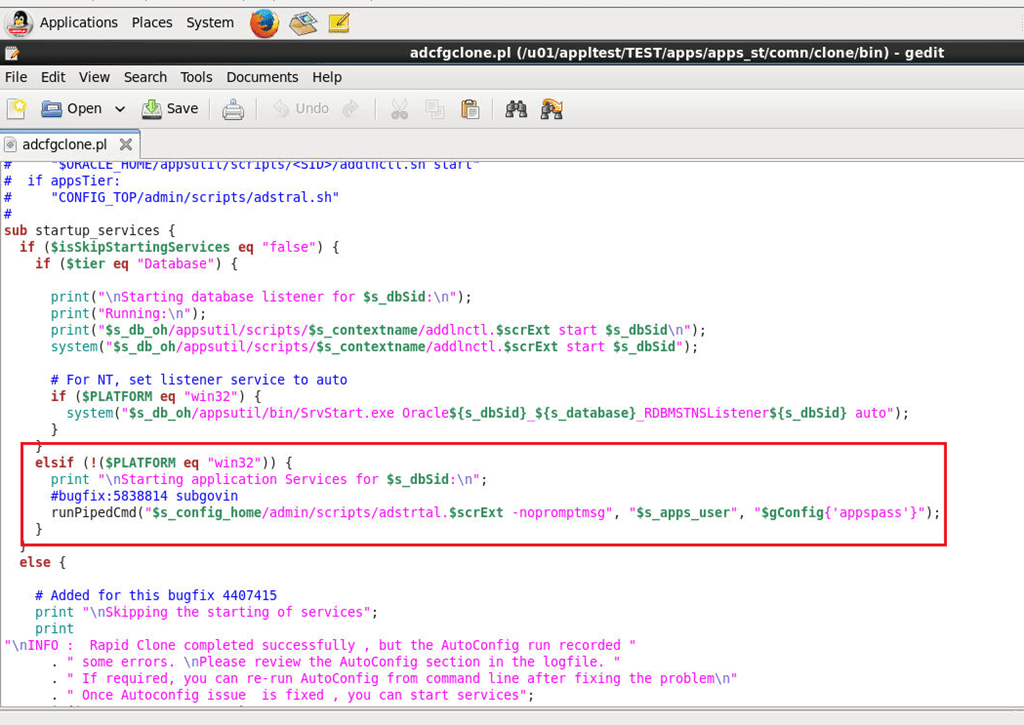 This script expects both ORACLE, APPLMGR users bash profiles sourcing environment files.