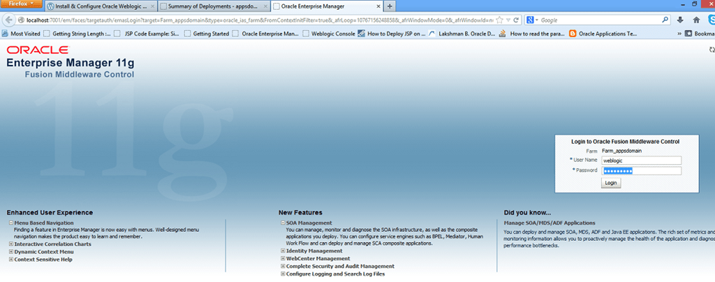 You may run into issues accessing the Enterprise Manager, incase if you have automated the weblogic admin server startup part using services & we have another post explaining how to tackle it here