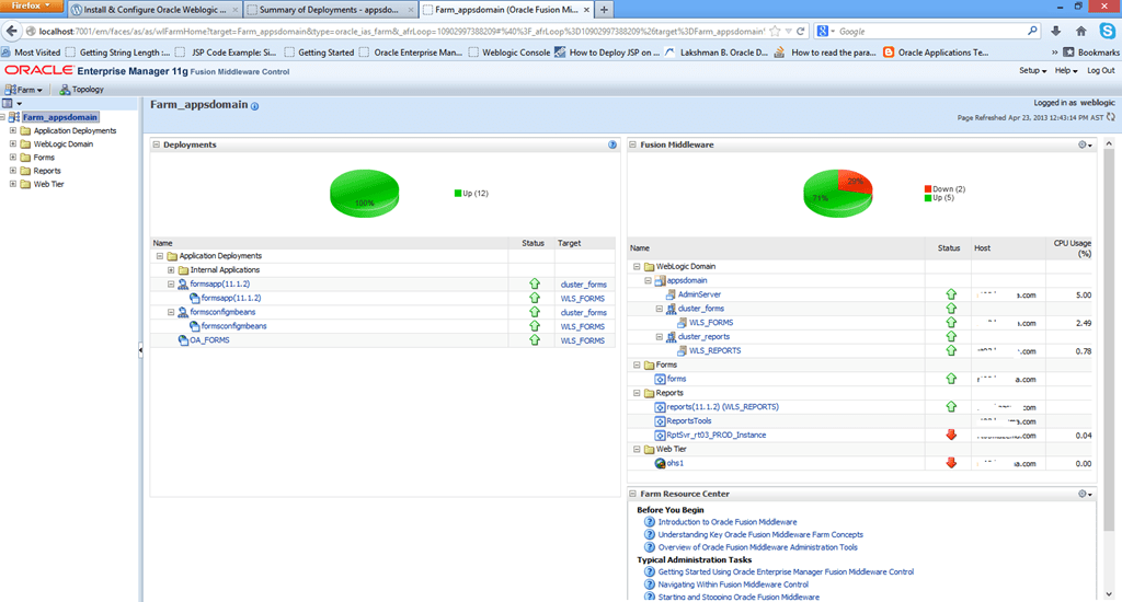 Part 3 – Configuring the Weblogic server with forms and reports 11g